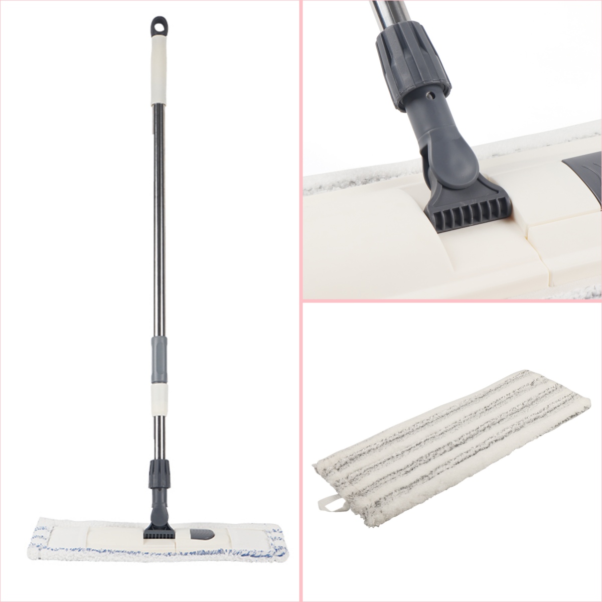 • Плоская швабра из микрофибры на клипсеПлоская швабра из микрофибры на клипсе