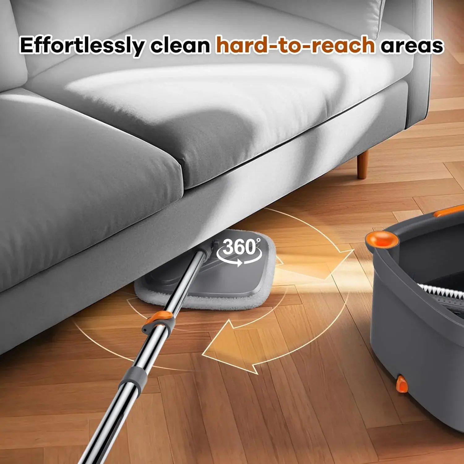 Уголка не осталось позади: головка швабры вращается на 360 градусов для легкой очистки труднодоступных участков. Набор спиннинг -ведра компактно для простого хранения и экономии места.